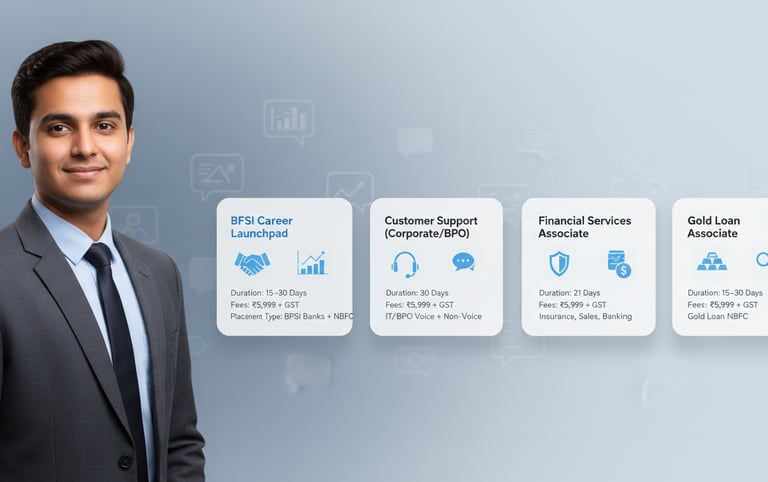 Courses crafted with input from HR experts and hiring managers to match real job requirements in BFSI and corporate sectors.